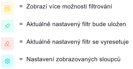 Kontakty si můžete filtrovat podle údajů, které k nim v databázi náleží. Vyhledávání funguje tím způsobem, že stačí zadat aspoň část řetězce. Vyhledají se všechny výsledky, které Vámi zadaný řetězec obsahují.