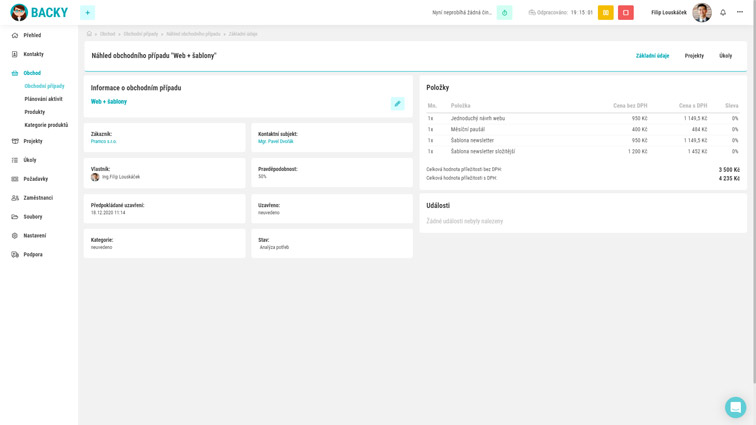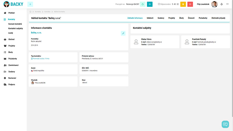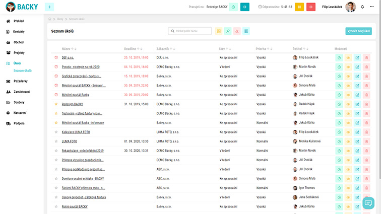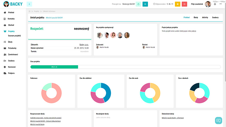 Všechny Vaše projekty na jednom místě a co hlavně, aktivně propojené napříč Backy s Vašimi zákazníky, obchodními případy, jednotlivými úkoly a zaměstnanci.